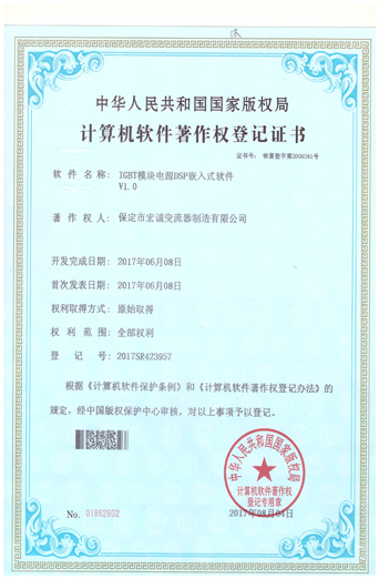 計算機軟件注冊權(quán)登記證書——IGBT模塊電源DSP嵌入式軟件V1.0
