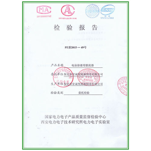 通過(guò)第三方國(guó)家電力電子技術(shù)中心對(duì)設(shè)備的全方面檢測(cè),滿足JB/T8675所有技術(shù)性能要求。