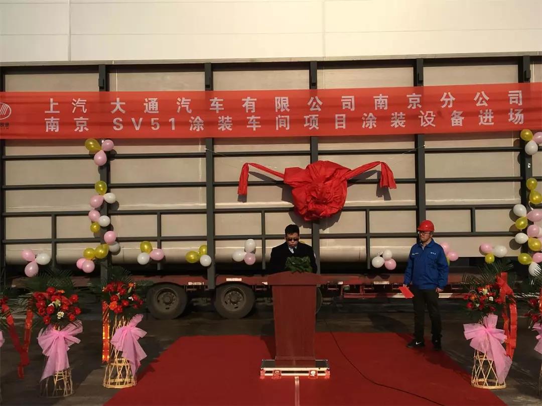 2017年12月19日上午9點18分,上汽大通汽車有限公司南京分公司SV51涂裝車間設備項目進場慶典在南京隆重舉行。上汽大通南京分公司副總經(jīng)理陳曉旭、ME總監(jiān)王穎、涂裝車間高級經(jīng)理趙敬寶、業(yè)主方代表、我公司涂裝工程院M+E團隊、建工二院B+U項目團隊、分包商代表,共60余人參加了啟動儀式,公司涂裝工程院副院長嚴正受邀參加了該儀式。